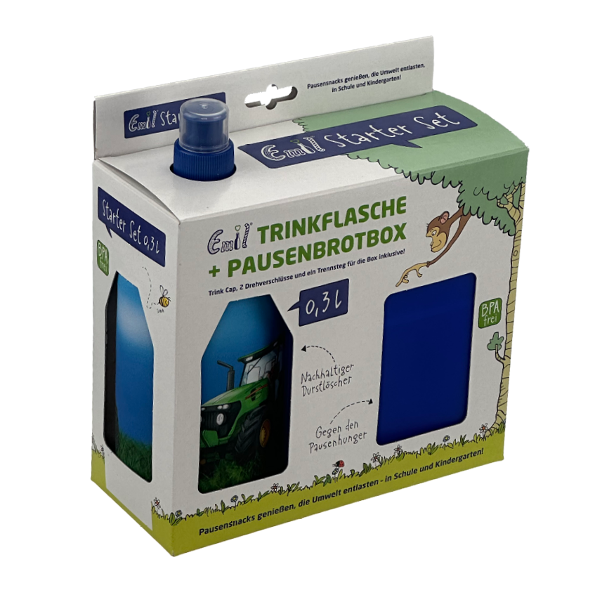 Starter-Set bestehend aus: Emil-Flasche, Brotbox, 2 Ersatzverschlüsse, 1 Trink-Cap