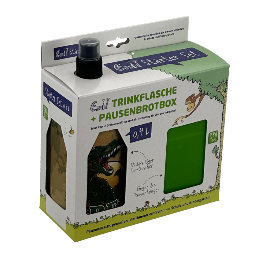 Starter-Set bestehend aus: Emil-Flasche, Brotbox, 2 Ersatzverschlüsse, 1 Trink-Cap
